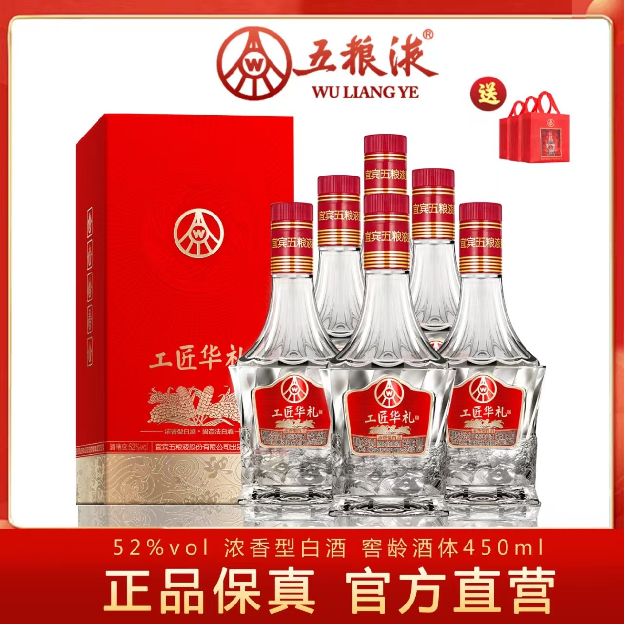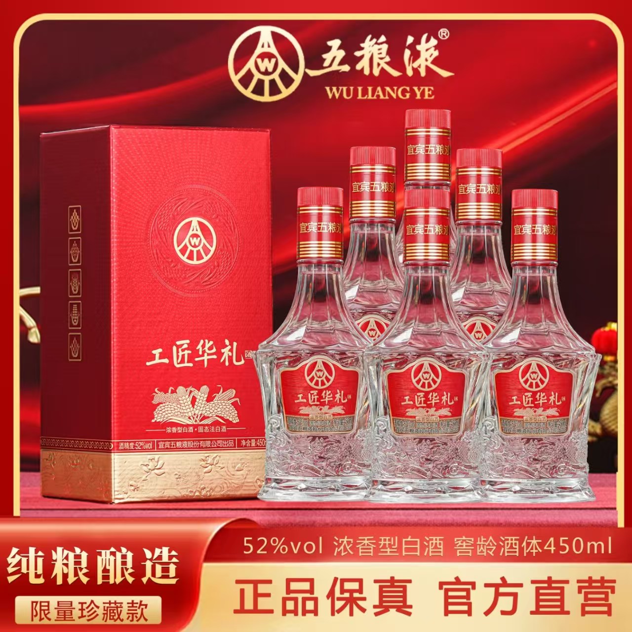 五粮液工匠华礼52度浓香型白酒【450ML*2瓶】