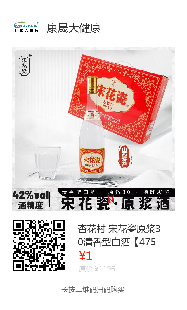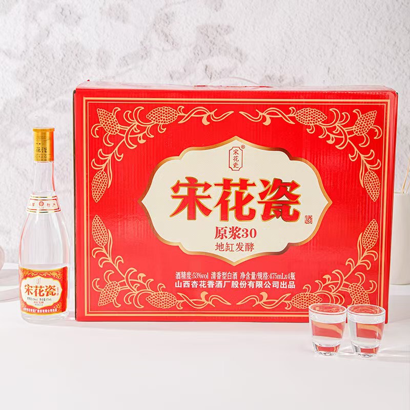 杏花村 宋花瓷原浆30清香型白酒【475ml*4瓶】